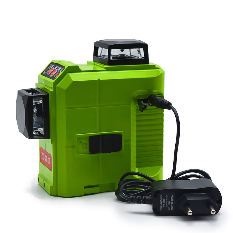 Професійний лазерний рівень Zokoun 3D 12 ліній. Самовирівнюється. Має яскраву та тонку лінію зеленого кольору. Робочий радіус 25 м. Похибка + 1 мм. на 5 м. Має функцію блокування лінії.